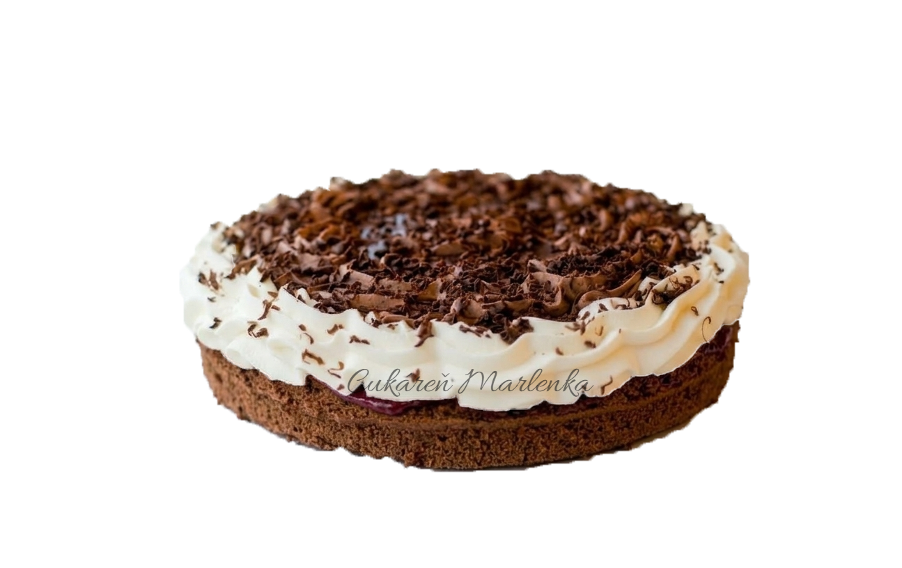 čokoládové cesto, džem, šľahačka, parížska šľahačka