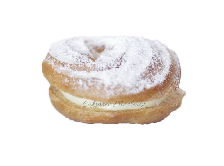 Odpaľované cesto, maslovo – vanilkový krém, práškový cukor